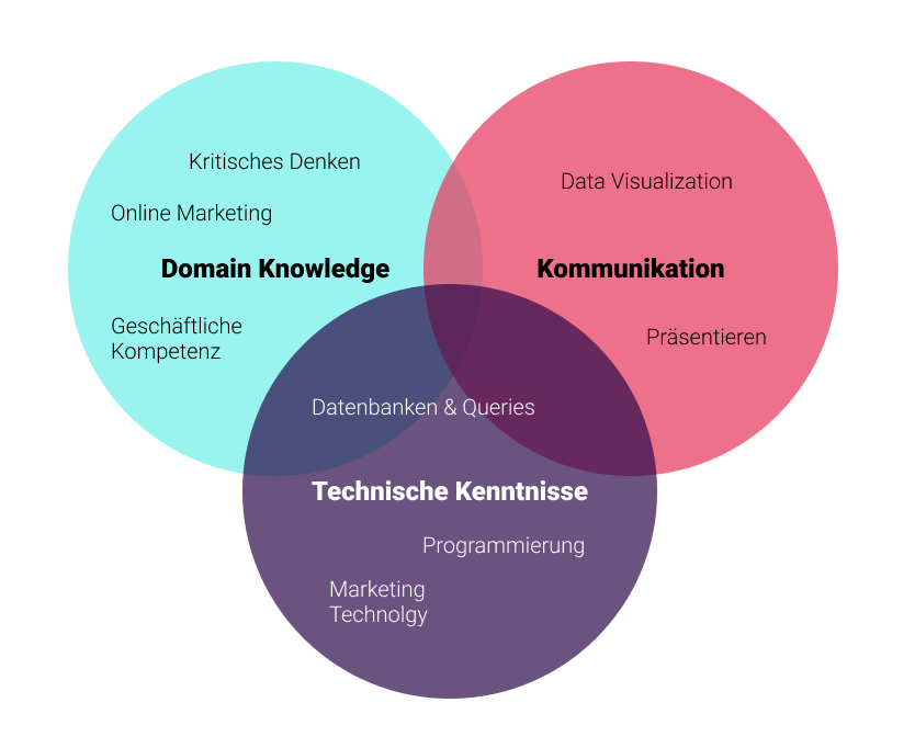 - Präsentation der Erkenntnisse für die Beteiligten (Datenvisualisierung, Storytelling und Kommunikationsfähigkeiten)